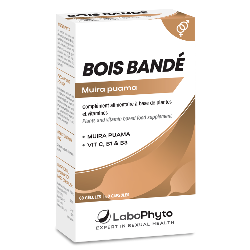 Entdecken Sie die neue Formel von Bois Bandé Labophyto, ein Nahrungsergänzungsmittel auf Basis von Muira Puama, auch bekannt als „bois bandé“, eine amazonische Pflanze, die für ihre natürlichen aphrodisierenden Eigenschaften geschätzt wird. Diese angereicherte Formel wurde nun mit den Vitaminen B1, B3 und C verstärkt, die für einen gesunden Energiestoffwechsel, mentale Widerstandskraft und sexuelle Vitalität unverzichtbar sind.